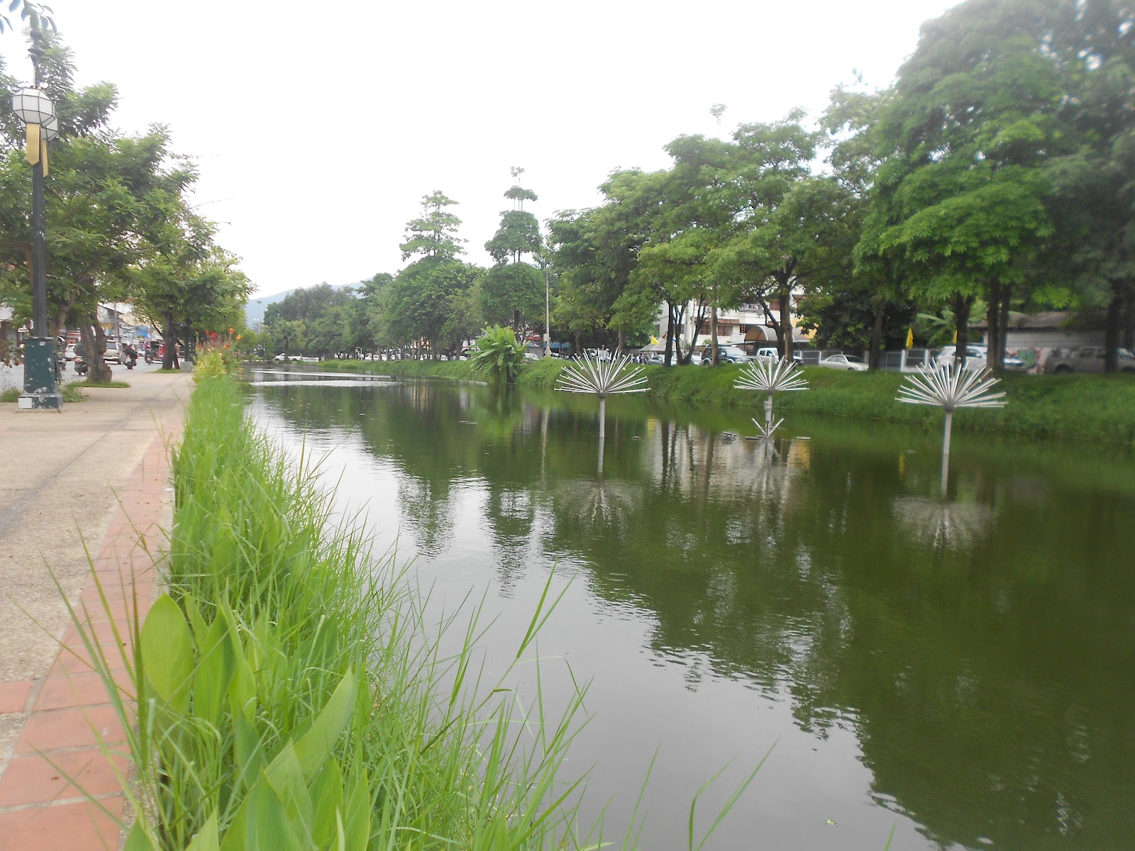 The lake seperating the inner and outer one way road system within Chiang Mai